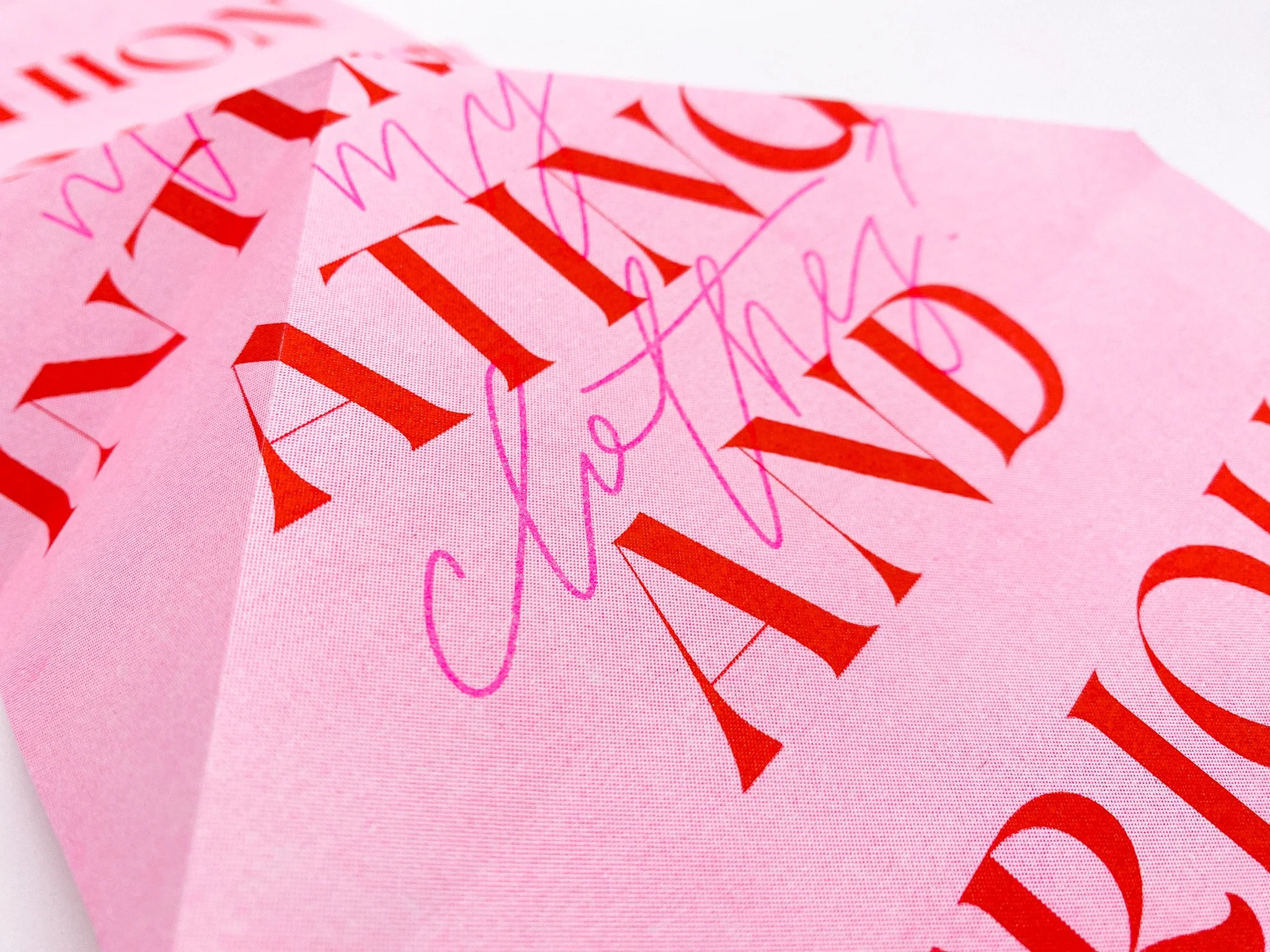 The flyer side features key information of the event and sewing symbols to emphasise the purpose of the market. The hand-written type seen throughout both sides also reflects this aspect of the hand-made. The poster side is more minimal with it being solely typographic, utilising quotes from the market’s website. The vibrancy of the pink and red is a result of riso printing the final outcome. Many elements of the flyer/poster overlap, to contribute to the printed effect riso creates.